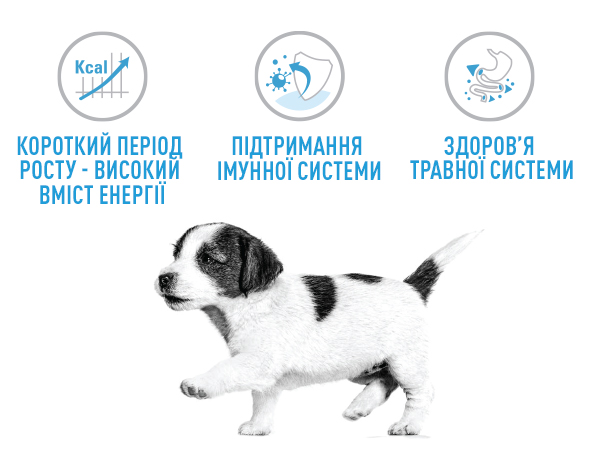Містить велику кількість мікроелементів і вітамінів, які необхідні тварині в період активного росту. Достатньо насичує без виникнення ефекту переїдання. Підтримує необхідний рівень енергії для активного життя та зростання. Забезпечує рухливість. Піклується про травлення та допомагає підтримувати природний процес росту і розвитку організму в цілому.