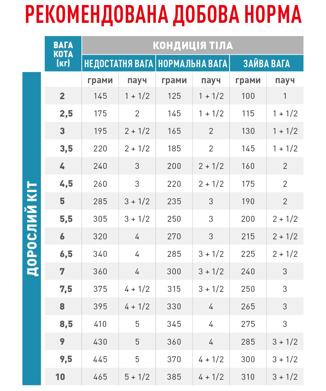 | Лінійка кормів | Ветеринарні дієти для котів |