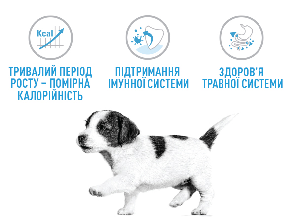 Забезпечує оптимальне живлення організму для підтримання необхідного рівня активності та енергії. Сприяє зміцненню кісток та суглобів. Не порушує баланс мікрофлори в кишківнику та забезпечує комфортне травлення. Підтримує природні захисні сили організму та є бар'єром від негативного впливу зовнішнього середовища. Дозволяє комфортно повністю перейти на сухий корм. Сприяє здоровій шкірі та красивій шерсті.